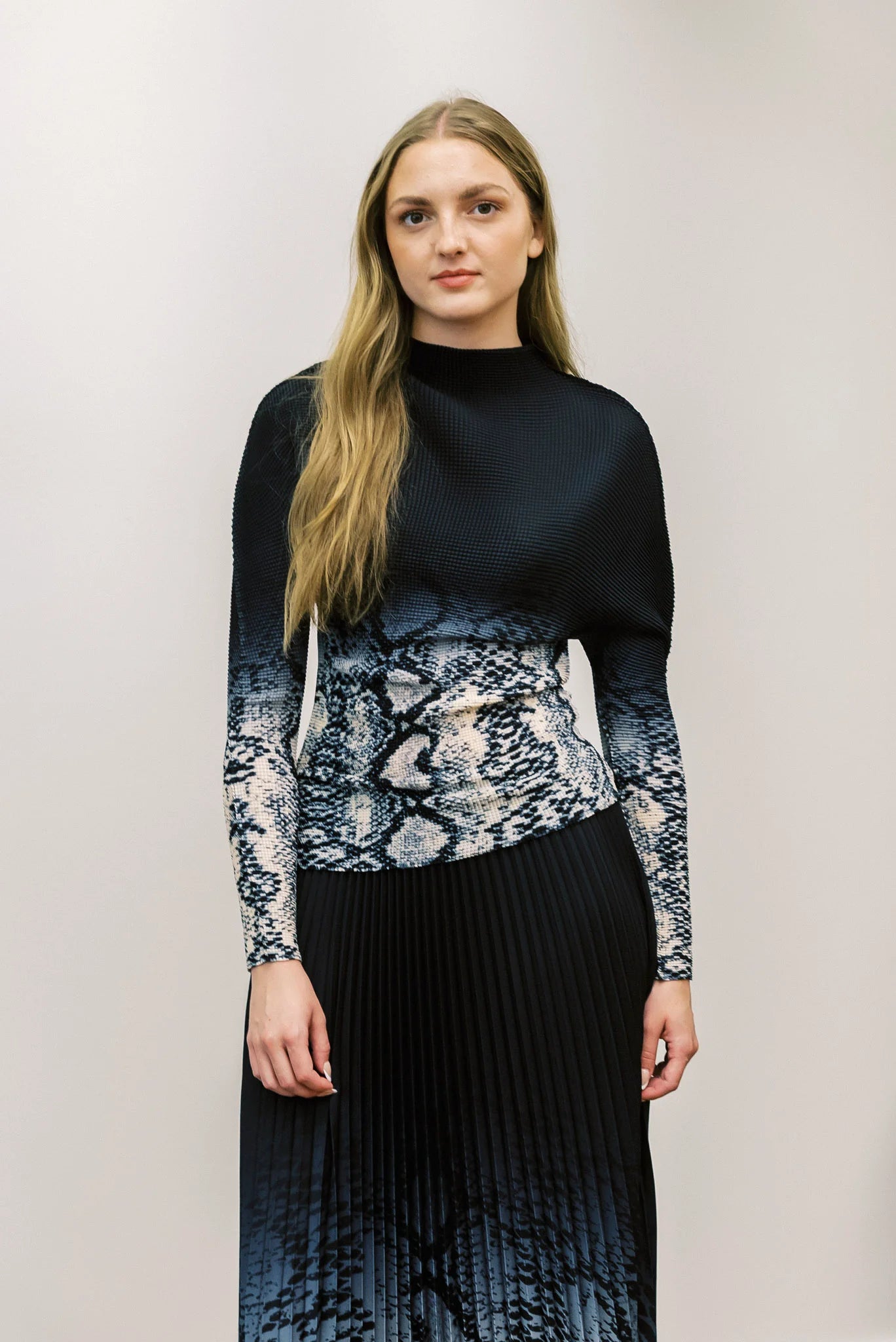 Crafted from lightweight, breathable 100% polyester, the WILD COSMOS Akira Snakeskin Top offers both comfort and style. Featuring a sleek transition from solid black to a dynamic snakeskin pattern, it effortlessly pairs with the Akira Snakeskin Skirt to create a standout, coordinated look. Perfect for those seeking edgy elegance with a comfortable fit.