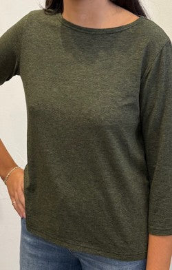 The 3/4 Sleeve Boat Neck Top by Cut Loose in Frog offers a flattering silhouette with its wide neckline and comfortable three-quarter sleeves. Its soft fabric ensures you stay cozy throughout the day, while the rich frog green color adds a fresh, natural touch to your wardrobe. Versatile and easy to pair, this top supports both casual and refined looks, making it a dependable choice for everyday wear.