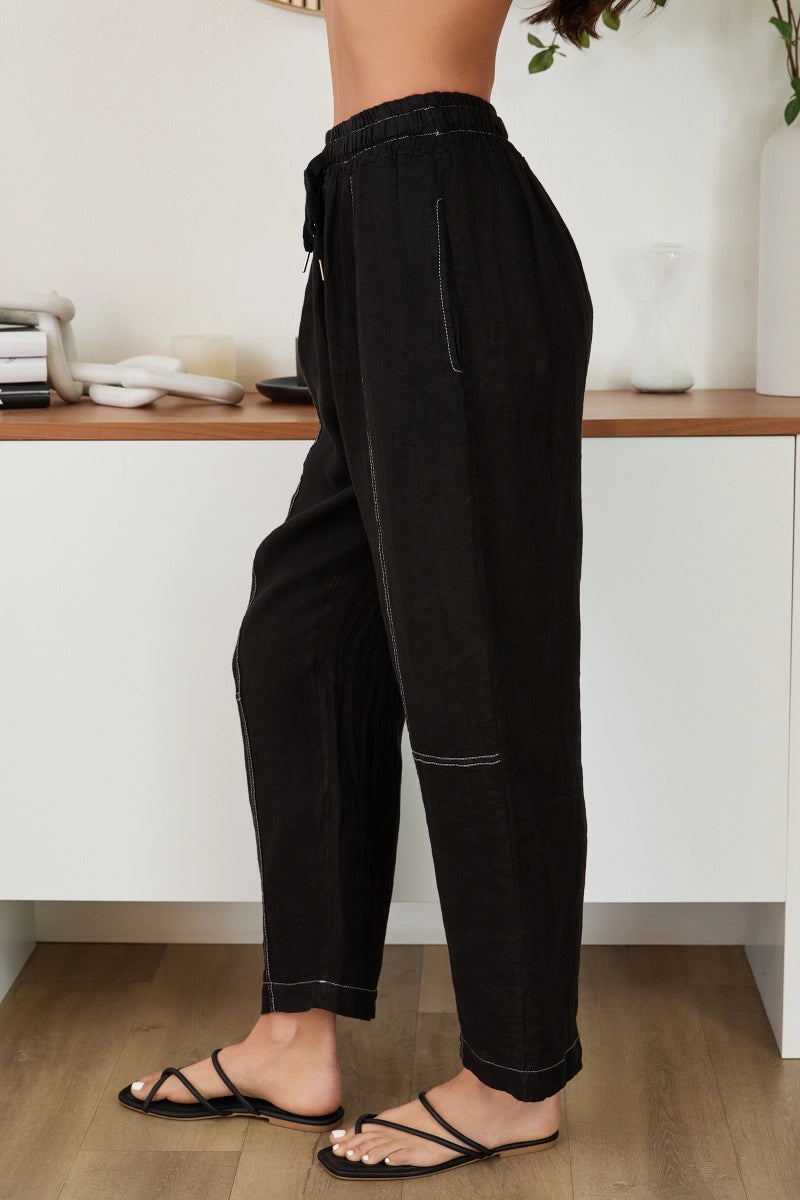 Experience the perfect blend of style and comfort with the Drawstring Waistband Edge Stitch Detail by Milio Milano in Black. Designed with a precise edge stitch, this waistband offers a sleek, refined look while ensuring a secure, adjustable fit. Ideal for those who value both fashion and functionality, it enhances your outfit with subtle sophistication and everyday ease. Elevate your wardrobe with this versatile piece that promises lasting comfort and a polished finish.