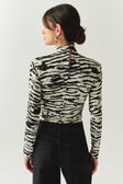 The Laylani Blouse features an animal-inspired print, high neckline, and slim fit through the arms and body. A statement knit that transitions effortlessly from desk to dinner.