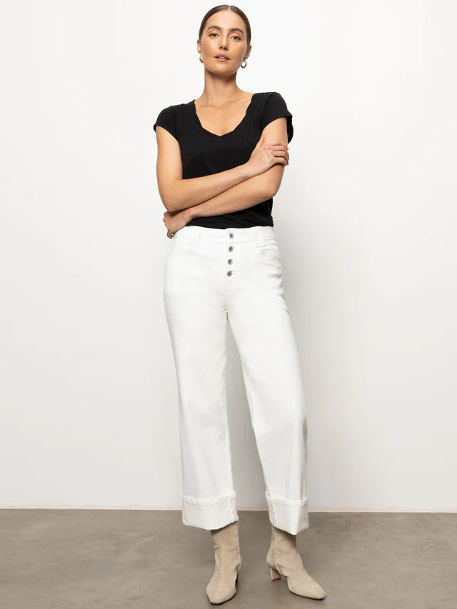 Introducing: Luna Cuffed Denim Pant by Sanctuary in Bleached White! Upgrade your wardrobe with this versatile and stylish pair of pants. Made with high-quality denim, these pants feature a comfortable cuff that adds a touch of edgy flair. Perfect for any occasion, these pants will become your new go-to!
