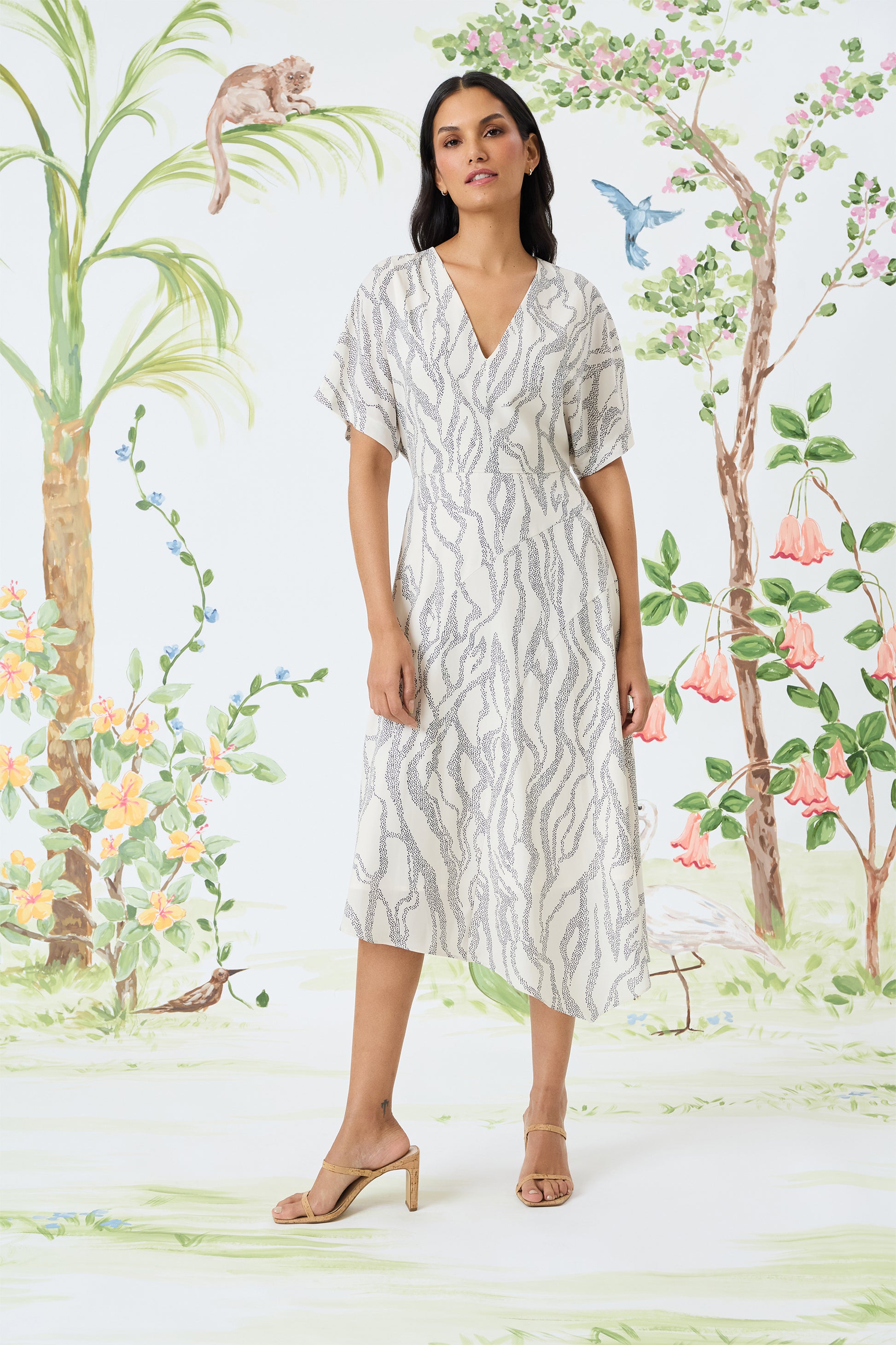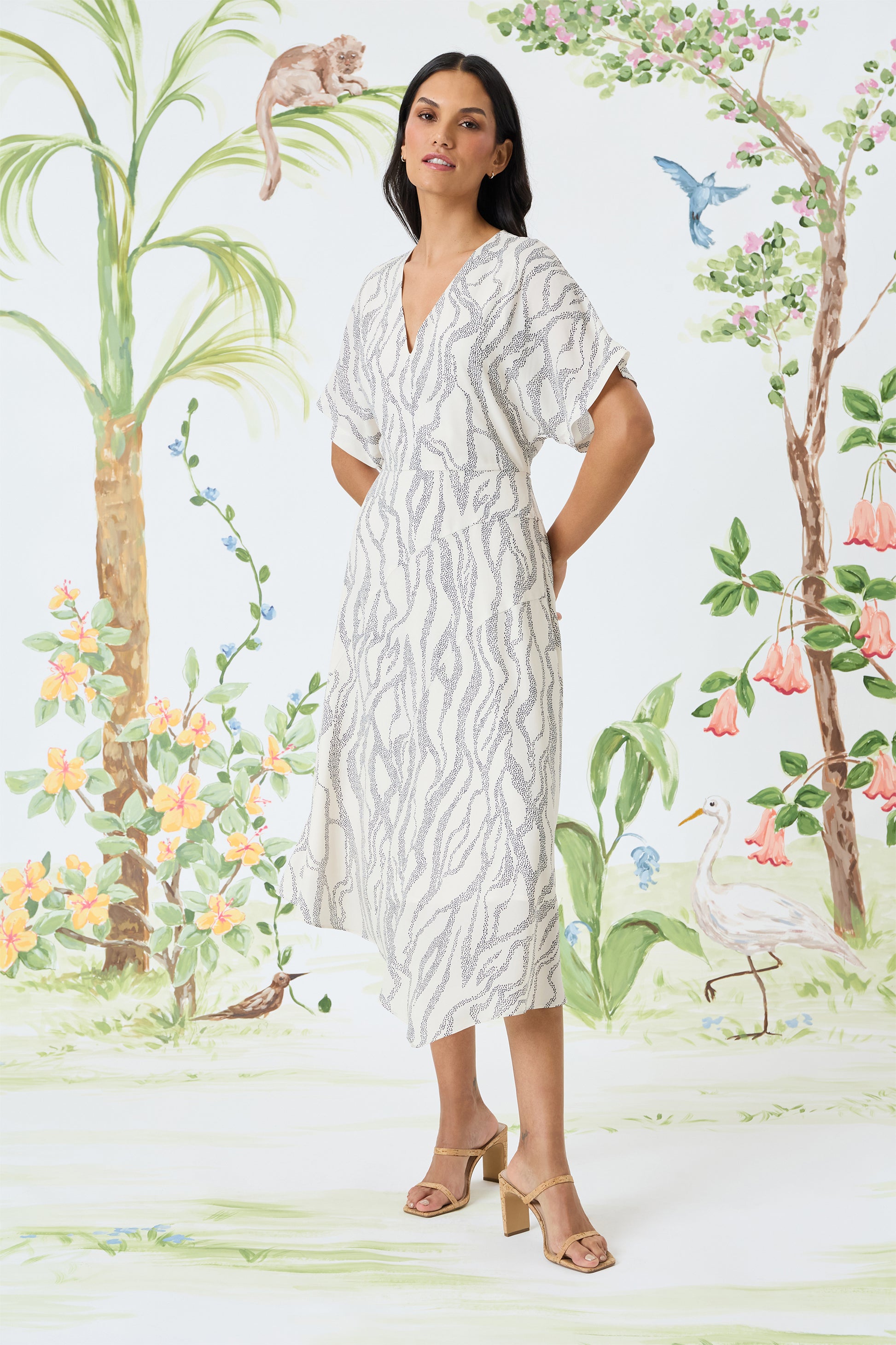 Effortlessly chic and playful, the Print Dress by Maggy London is perfect for any occasion. The blend of ivory and charcoal creates a sophisticated print that is sure to turn heads. With a slimming silhouette and comfortable fit, this dress is both stylish and versatile.