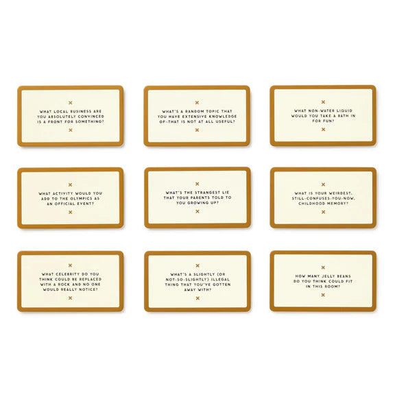 Topics like ‘What’s the pettiest reason you’ve ever broken up with someone?’ and ‘What’s a secret talent no one in the room knows you have?’
