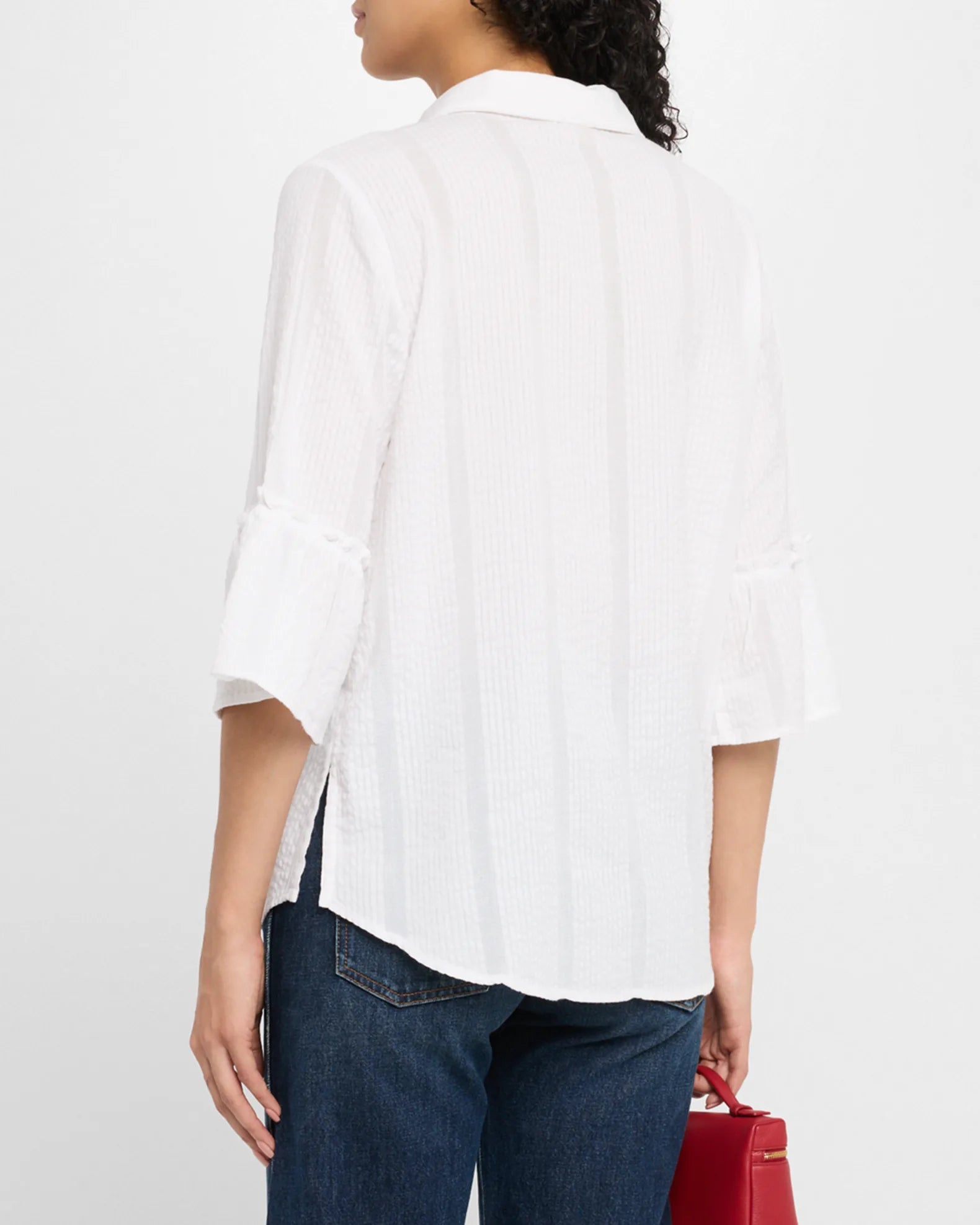- Johnny Was "Florrie" cotton seersucker tunic animated with floral and butterfly embroidery