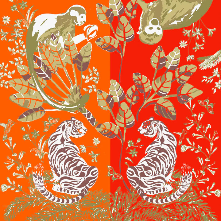 Discover the Safari Wool Stole and its playful tigers and monkeys, which stands out against a neutral and soothing beige background. This ultra-soft Australian wool stole offers a luxurious texture and ultimate comfort. The orange and red details add a subtle touch that attracts the eye and brings a note of freshness to the whole. The pattern of this stole is imagined and designed in France, in Paris. The stole is then made in our workshop in India, using a traditional artisanal screen printing technique. Each step of the process, from design to color application, through the development of fibers and weaving, is carried out with care to obtain an impeccable result. This super soft wool stole is very easy to wear and suitable for any occasion.