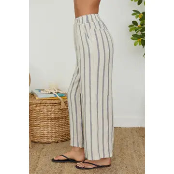Step into effortless elegance with the Stripe Wide Leg Linen Pant by Milio Milano in Beige/Blue. Crafted from breathable linen, these pants offer a relaxed fit with wide legs that move gracefully. The subtle stripe pattern adds a touch of sophistication, making them perfect for both casual outings and polished occasions. Embrace comfort without compromising style with this versatile wardrobe essential.