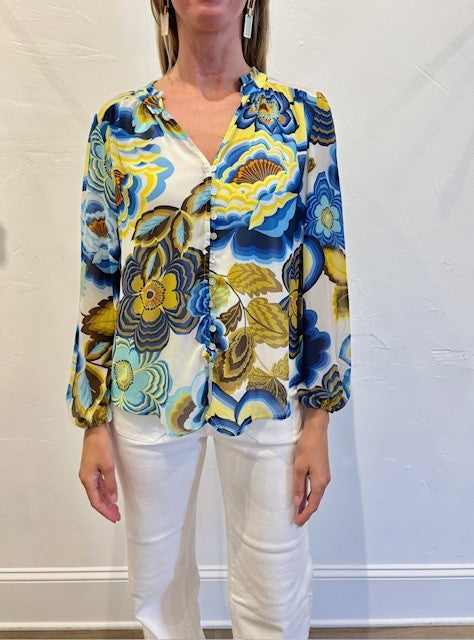 Elevate your wardrobe with the Top by Olive Hill in Blue/Gold. This stylish piece combines rich blue tones with elegant gold accents, creating a versatile look perfect for both casual outings and special occasions. Crafted for comfort and designed to impress, it effortlessly enhances your style while keeping you comfortable all day long. Make a statement with this unique top that blends classic charm with modern flair.