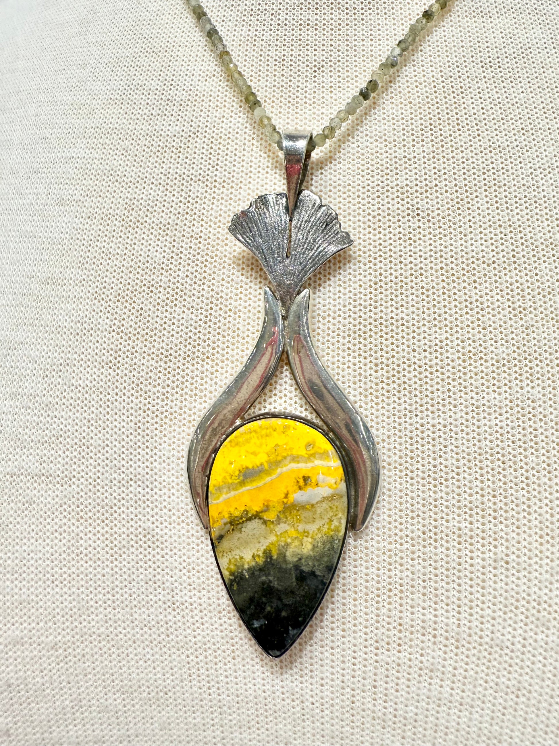 Transform your look with this stunning Bumblebee Jasper pendant in sterling silver. The vibrant colors and unique patterns of Bumblebee Jasper make this necklace a one-of-a-kind piece. The bead strand adds a touch of elegance, making it a versatile accessory for any occasion. Elevate your style with the beauty of Bumblebee Jasper by Elysium.