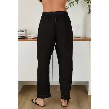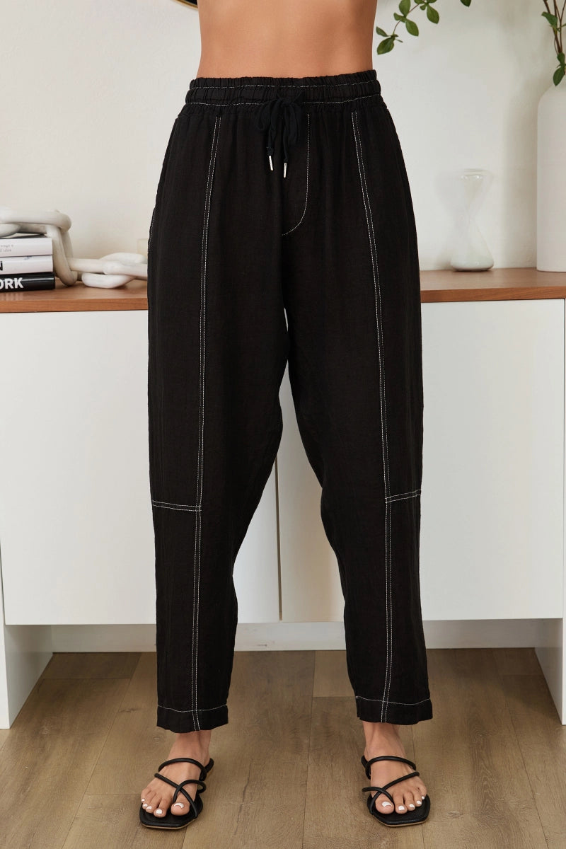 Experience the perfect blend of style and comfort with the Drawstring Waistband Edge Stitch Detail by Milio Milano in Black. Designed with a precise edge stitch, this waistband offers a sleek, refined look while ensuring a secure, adjustable fit. Ideal for those who value both fashion and functionality, it enhances your outfit with subtle sophistication and everyday ease. Elevate your wardrobe with this versatile piece that promises lasting comfort and a polished finish.