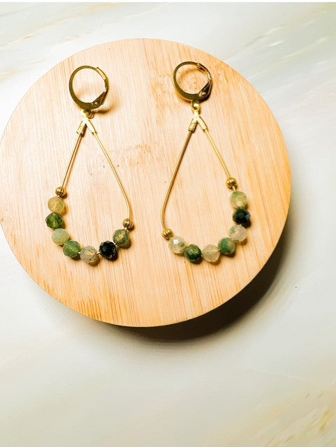 Crafted with care by Santore Jewelry, this Gem Gradient Teardrop Earring in Moss Agate offers a gentle blend of earthy hues that complement any style. Its unique teardrop shape highlights the natural beauty of the stone, making it a thoughtful accessory that adds subtle elegance to your everyday look. Perfect for those seeking a graceful touch with meaningful simplicity.