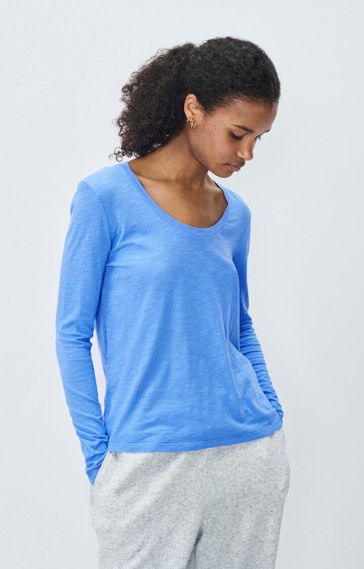 The Jacksonville Top by American Vintage in Vintage Celeste is a playful addition to your wardrobe. With its quirky color and comfortable fit, this top will elevate any outfit. Don't take yourself too seriously - add some fun to your style with this top!