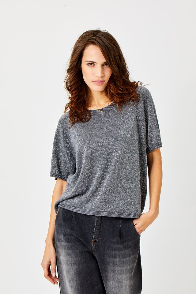 The Ludo Knit Lurex Tee blends the softness of 55% modal with the durability of 45% polyamide for a comfy, long-lasting fit. Made in Italy, this tee sparkles subtly with lurex accents, adding a fun twist to your everyday style. Perfect for brightening up casual looks with a touch of playful shimmer.