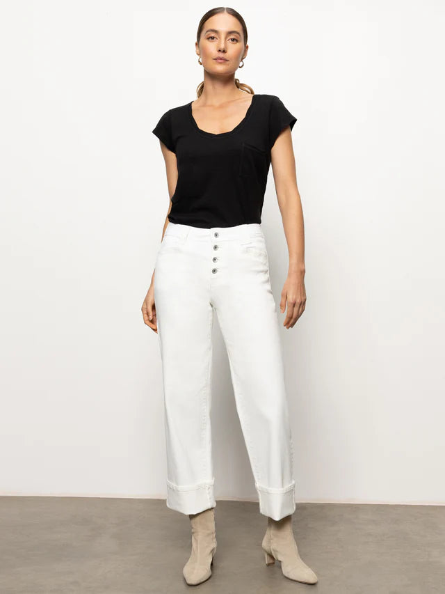 Introducing: Luna Cuffed Denim Pant by Sanctuary in Bleached White! Upgrade your wardrobe with this versatile and stylish pair of pants. Made with high-quality denim, these pants feature a comfortable cuff that adds a touch of edgy flair. Perfect for any occasion, these pants will become your new go-to!