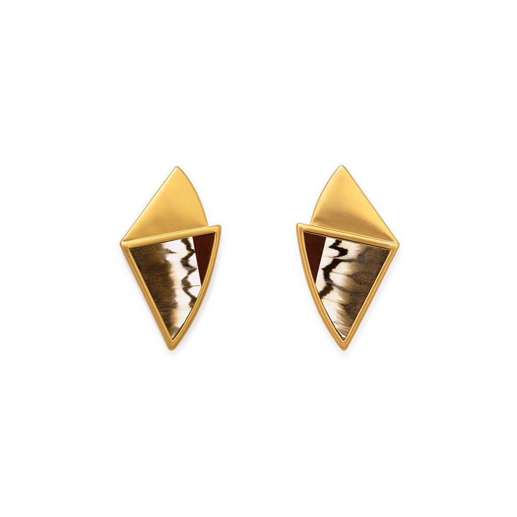 Rustic elegance meets modern design in the Luna Triangle Drop Earring. Featuring a blend of soft white bobwhite quail and both natural and dyed goose feathers, Luna brings together delicate texture and muted color with effortless refinement. The warm, organic feel of the feathers contrasts beautifully with the clean lines of the geometric hardware, creating a look that’s both grounded and contemporary. Lightweight and versatile, Luna is perfect for adding an earthy, artful touch to your everyday or occasion-ready wardrobe.