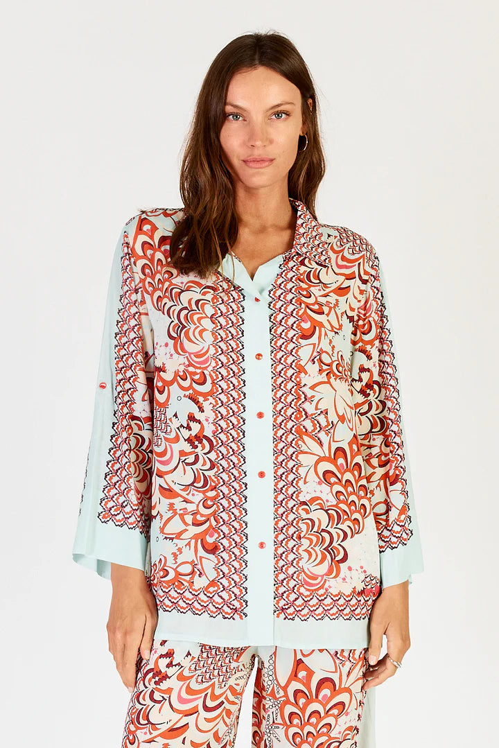 Get ready to turn heads in the Matera Shirt by Lula Soul in Flame! Stand out in this vibrant and playful shirt, perfect for any occasion. Made with high-quality material, this shirt is as comfortable as it is stylish. Express yourself with the unique and eye-catching design.