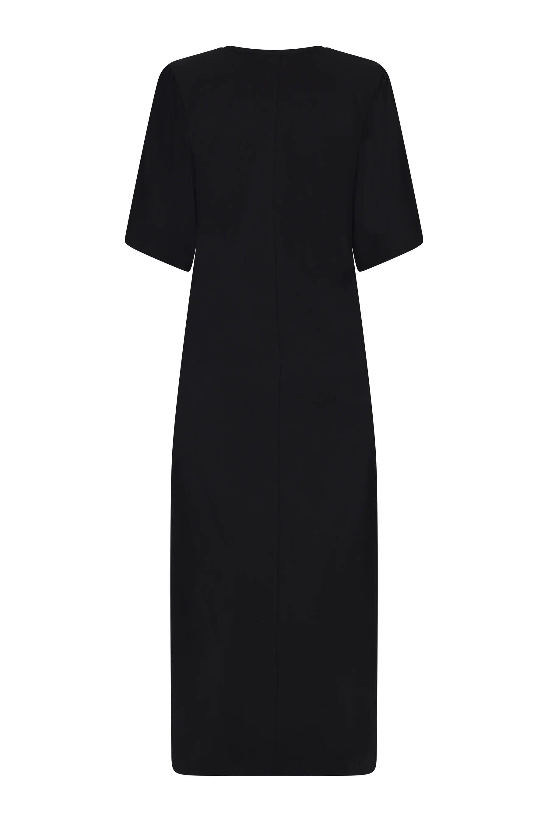The Nathala dress is made of stretchy jersey and has ruching at the sides, which creates a beautiful and flattering silhouette. With oversized sleeves and a length of 130 cm, it's perfect for both parties and everyday wear. Style it with a belt at the waist and a pair of high heels for an elegant look, or with flat sandals for a relaxed, bohemian-inspired style.