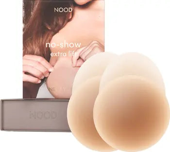 NOOD No-Show Extra Lift adhesive nipple covers give you a little lift with the perfect round shape, without a bra. Made from SkinFinishâ„¢ matte silicone for a smooth seamless finish.