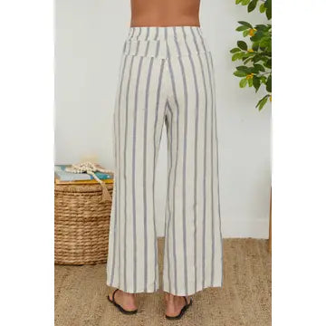 Step into effortless elegance with the Stripe Wide Leg Linen Pant by Milio Milano in Beige/Blue. Crafted from breathable linen, these pants offer a relaxed fit with wide legs that move gracefully. The subtle stripe pattern adds a touch of sophistication, making them perfect for both casual outings and polished occasions. Embrace comfort without compromising style with this versatile wardrobe essential.