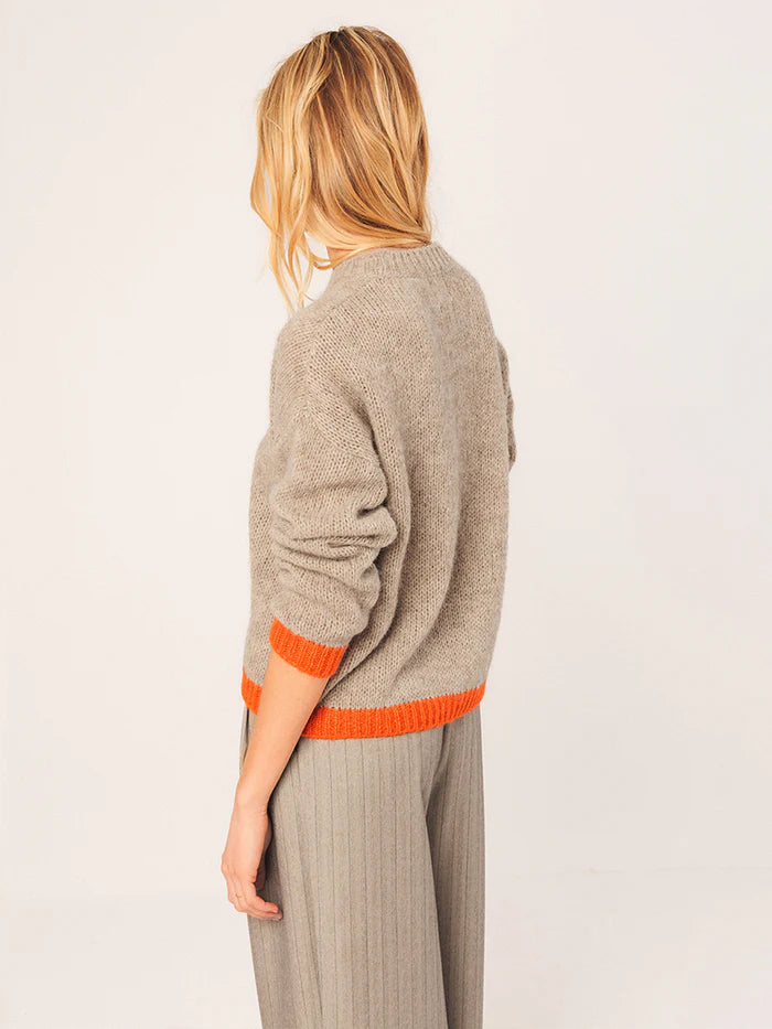 The Bicolor Sweater in Beige Orange from Indi & Cold features an accent color of Orange on the hem and cuffs, with a crew neckline, long sleeves and a slightly slouchy fit. Made in Italy.