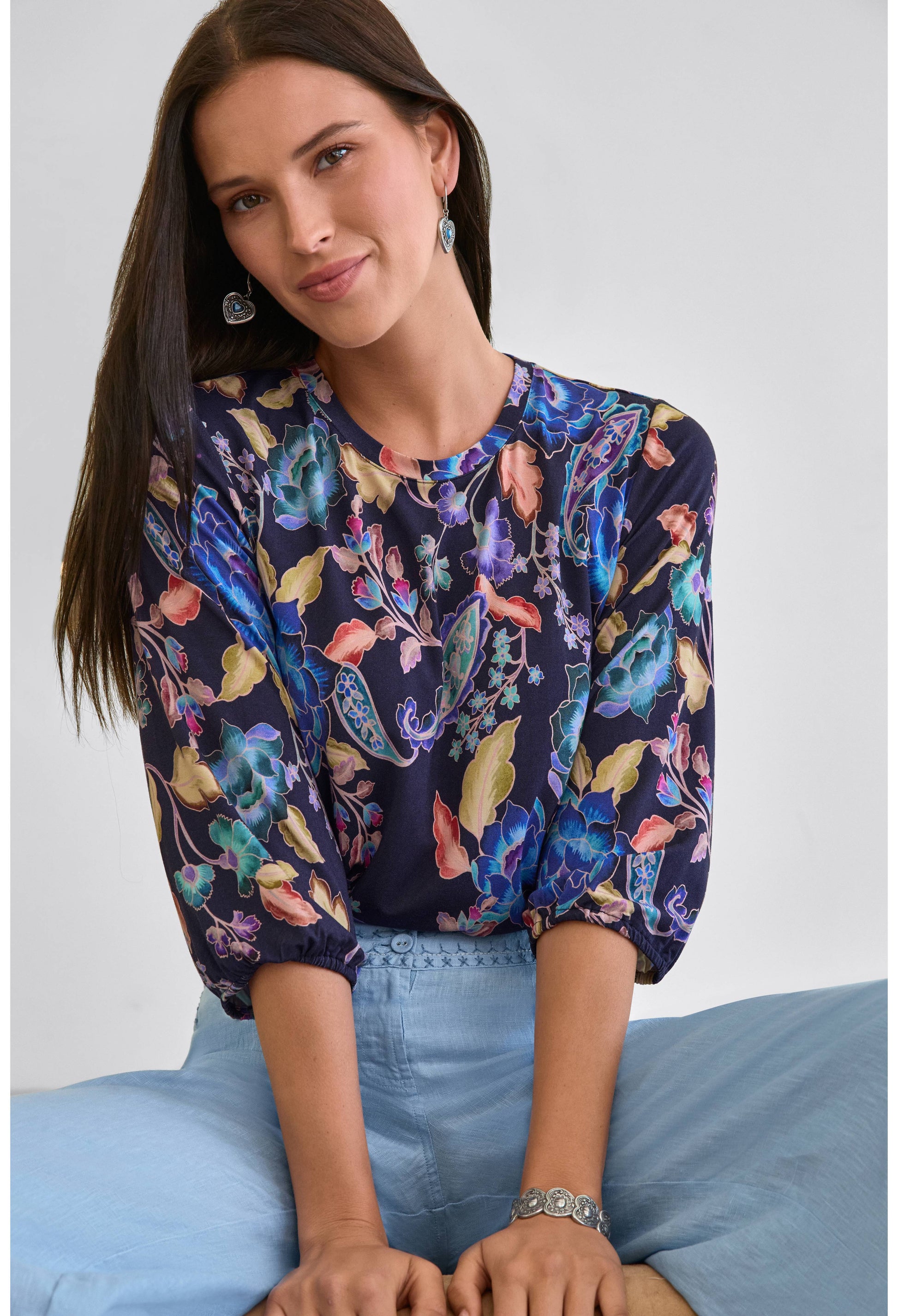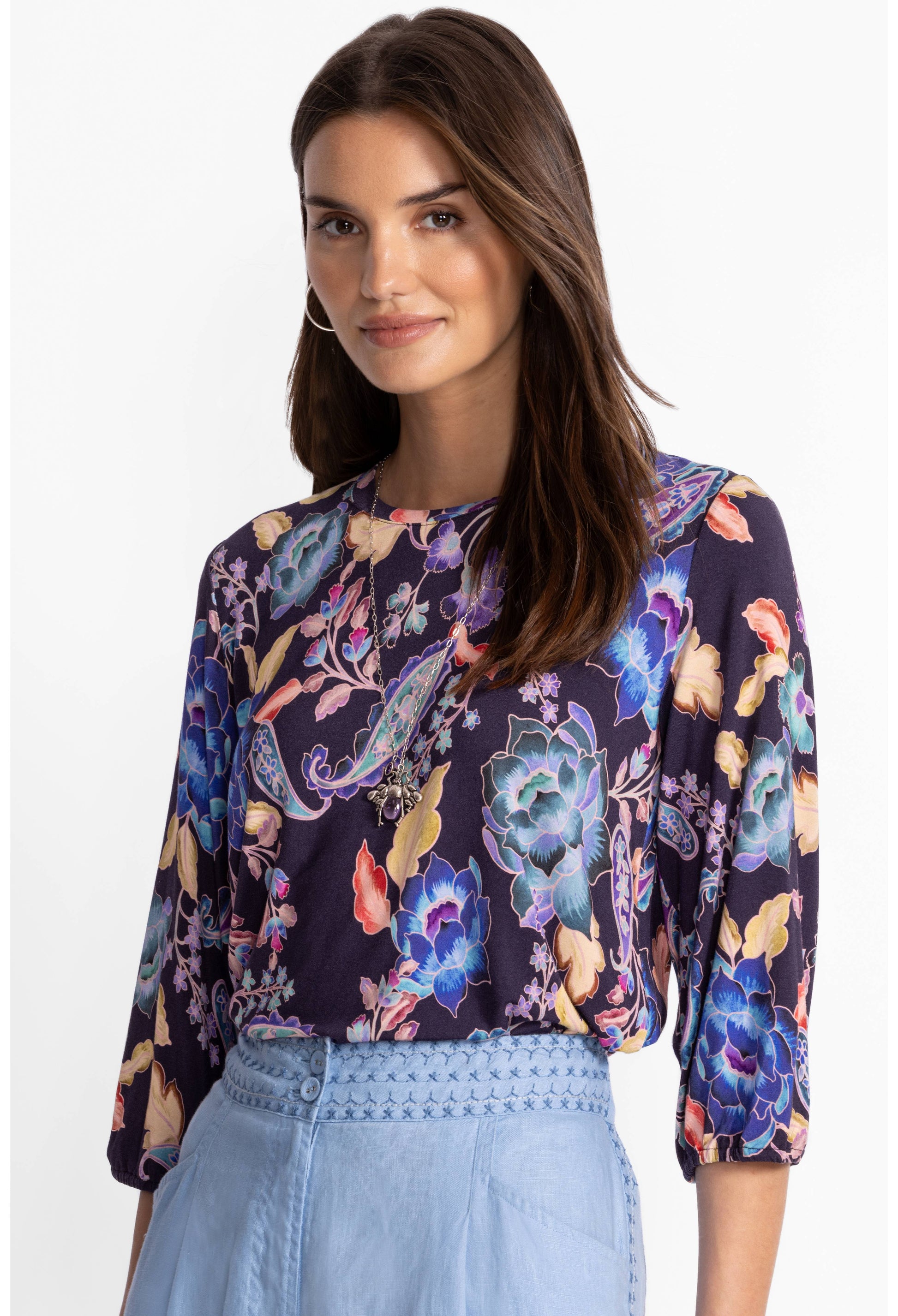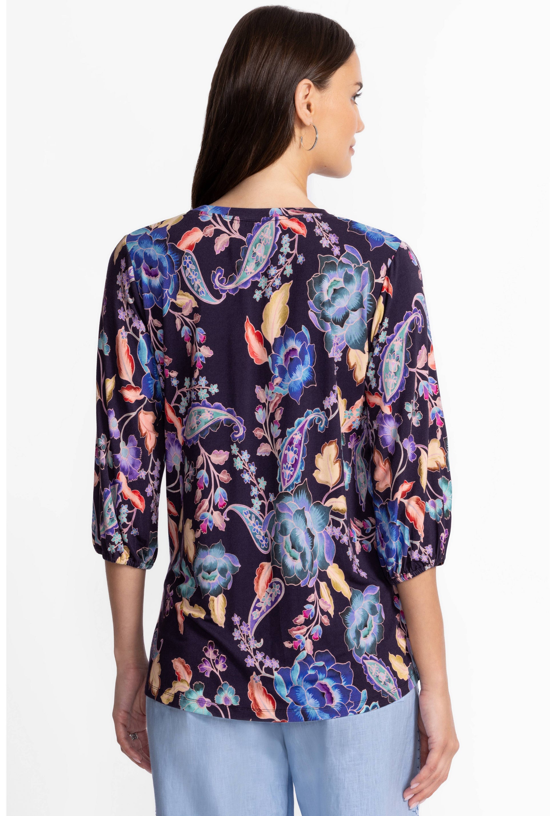 Boldly embellished with a vibrant paisley pattern, the Janie Favorite Puff Sleeve Top offers a fresh take on a classic tee. Designed with a crew neckline and gently puffed elbow-length sleeves, this incredibly soft top is finished with a straight silhouette. Pair with relaxed-fit denim and fashion sneakers for a day out running errands.