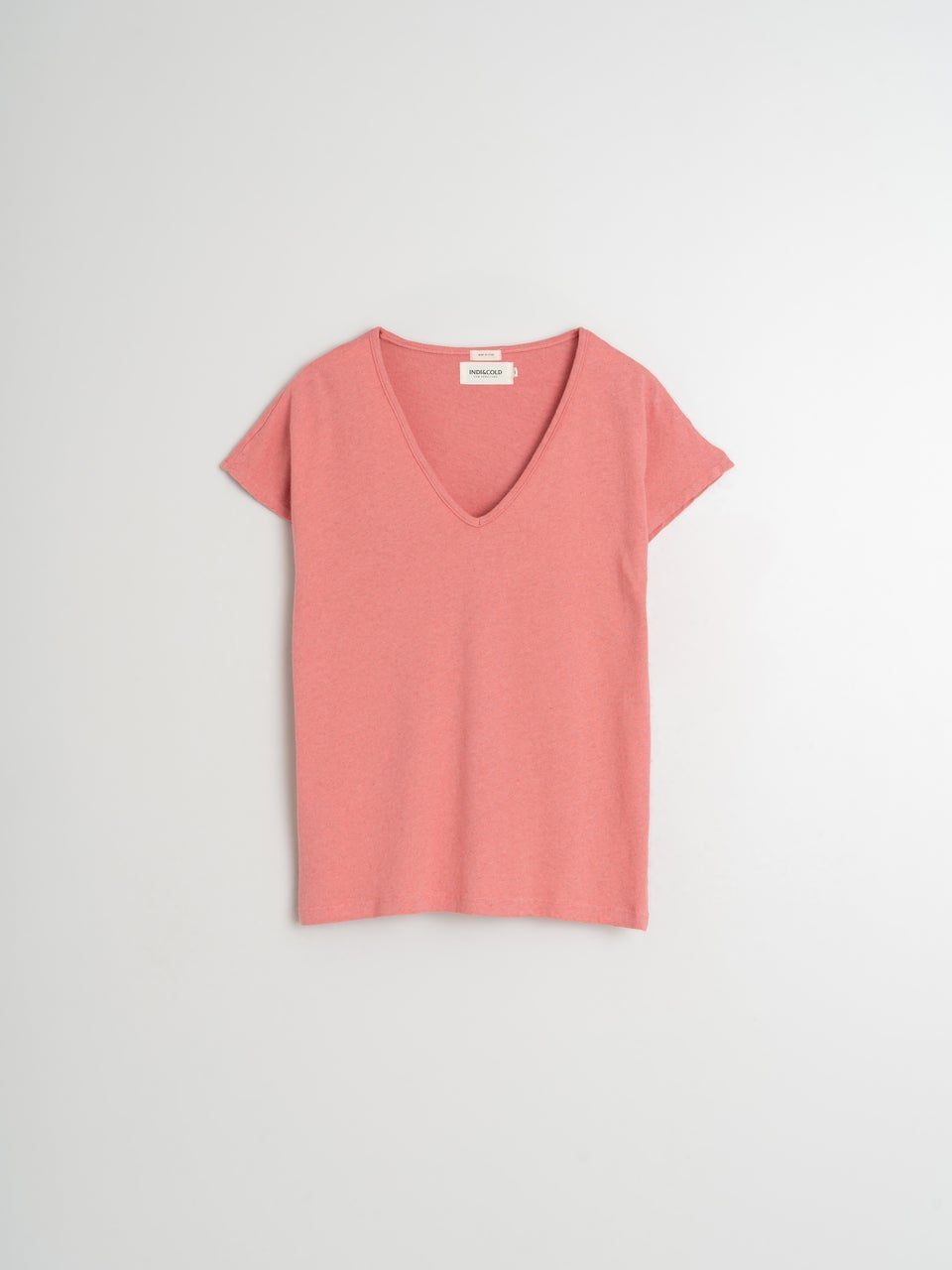 Upgrade your casual look with the Rustic-Effec Melange T-shirt by Indi & Cold in Sandia. This shirt's unique design and comfortable fit make it perfect for any occasion. Show off your playful side with this quirky and fun addition to your wardrobe.