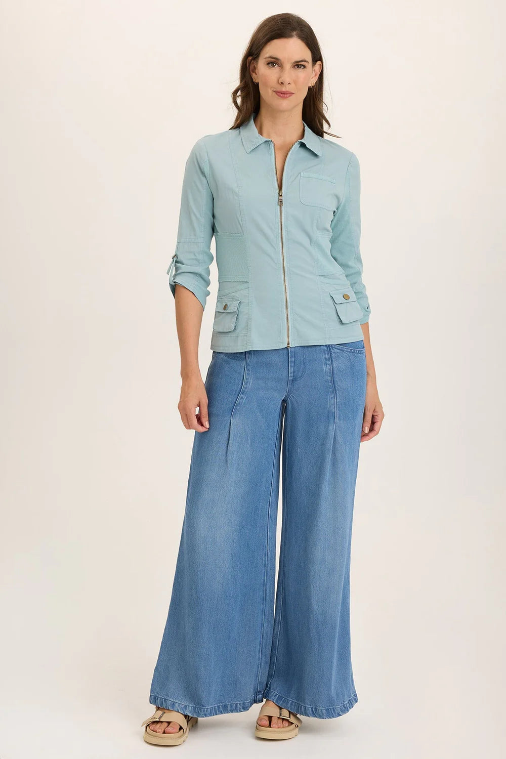 Made in our classic poplin, a traditional collar graces this form-fitting jacket. Wexel features an antique brass zipper pull, twill tape details on pocket edges with antique brass hardware throughout. Also featuring contrasting panels at the front/back waist and under the sleeve for maximum flexibility.